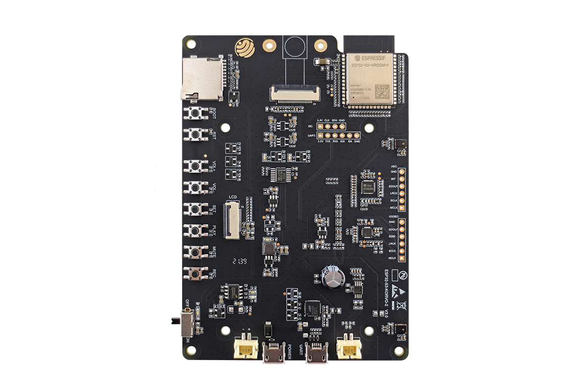 ESP32-S3-Korvo-2는 ESP32-S3 기반 멀티미디어 개발 보드입니다. 음성 인식 및 근거리/원거리 음성 깨우기 애플리케이션에 적합한 2개의 마이크 어레이가 장착되어 있습니다. 이 보드에는 LCD, 카메라, TF 등 여러 주변 장치가 통합되어 있습니다. 또한 JPEG 비디오 스트림 처리도 지원합니다. 뛰어난 기능을 모두 갖춘 이 보드는 저비용, 저전력 오디오 및 비디오 제품 개발을 위한 이상적인 선택입니다.