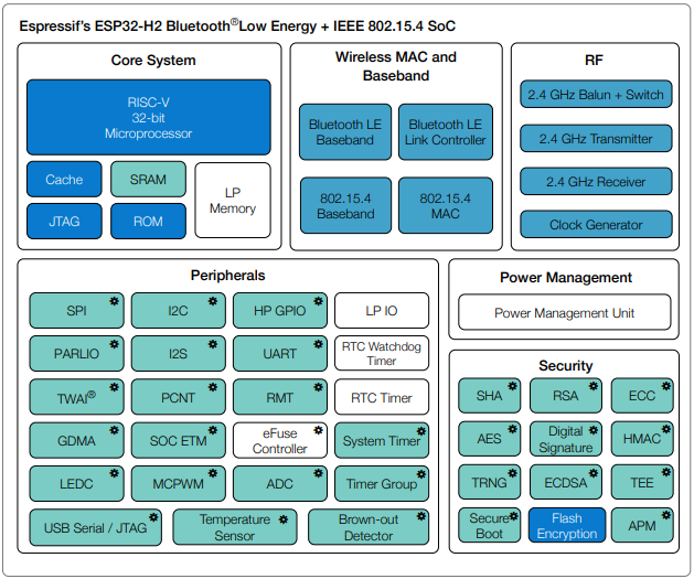 ESP32-H2-MINI-1은 강력한 일반용 블루투스 Low Energy 및 IEEE 802.15.4 콤보 모듈로 ESP32-H2 칩을 기반으로 합니다. 이 모듈은 전력 소모에 높은 요구를 가지는 IoT 응용 프로그램을 구축하기에 이상적입니다. 예를 들어, 이 모듈을 사용하여 Matter 기반 스마트 홈 장치를 구축할 수 있어 서로 다른 생태계 간의 상호 운용성을 제공하거나, 다른 Espressif Wi-Fi 제품과 함께 사용하여 Thread 보더 라우터를 만들 수 있습니다. 이 모듈은 매우 작은 크기로, ESP32-C3-MINI, ESP32-C6-MINI 모듈과 핀 간 호환성이 있습니다.