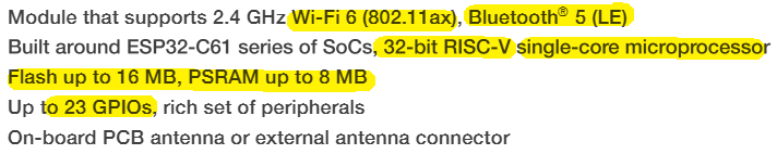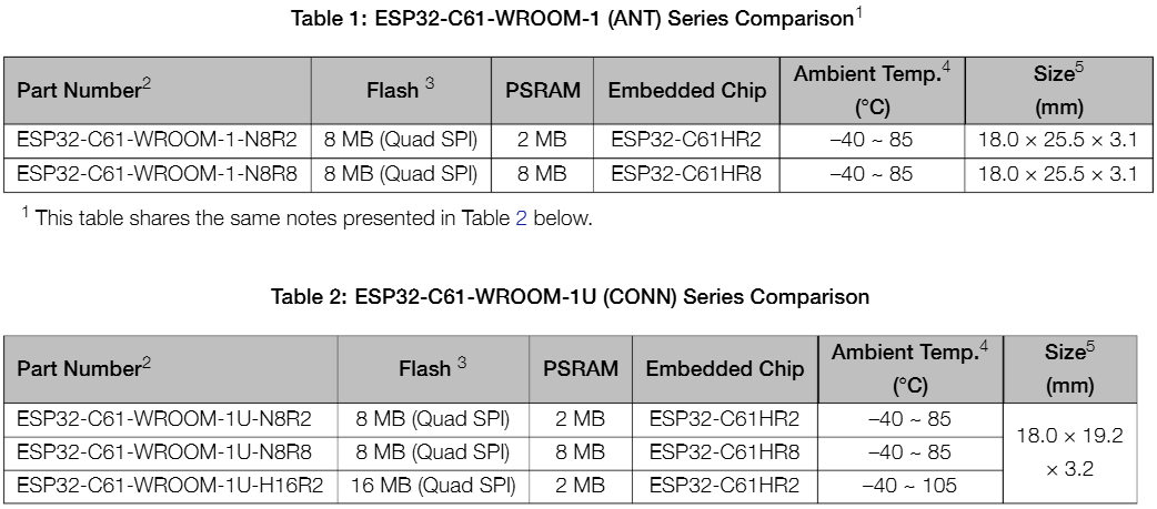 ESP32-C61-WROOM-1 & ESP32-C61-WROOM-1U Datasheet | Espressif Documentation